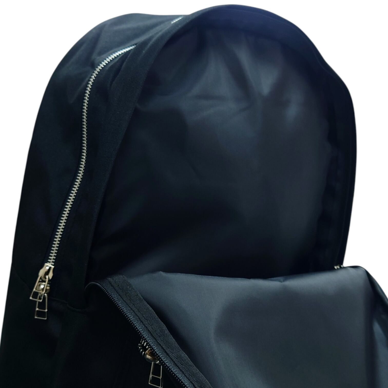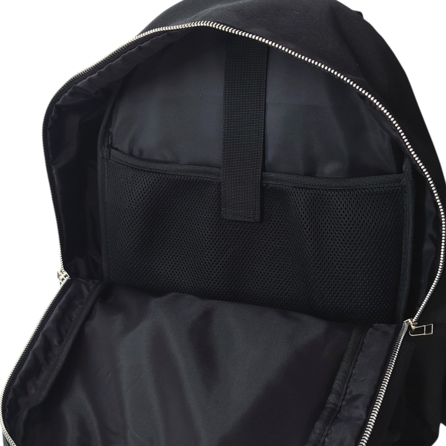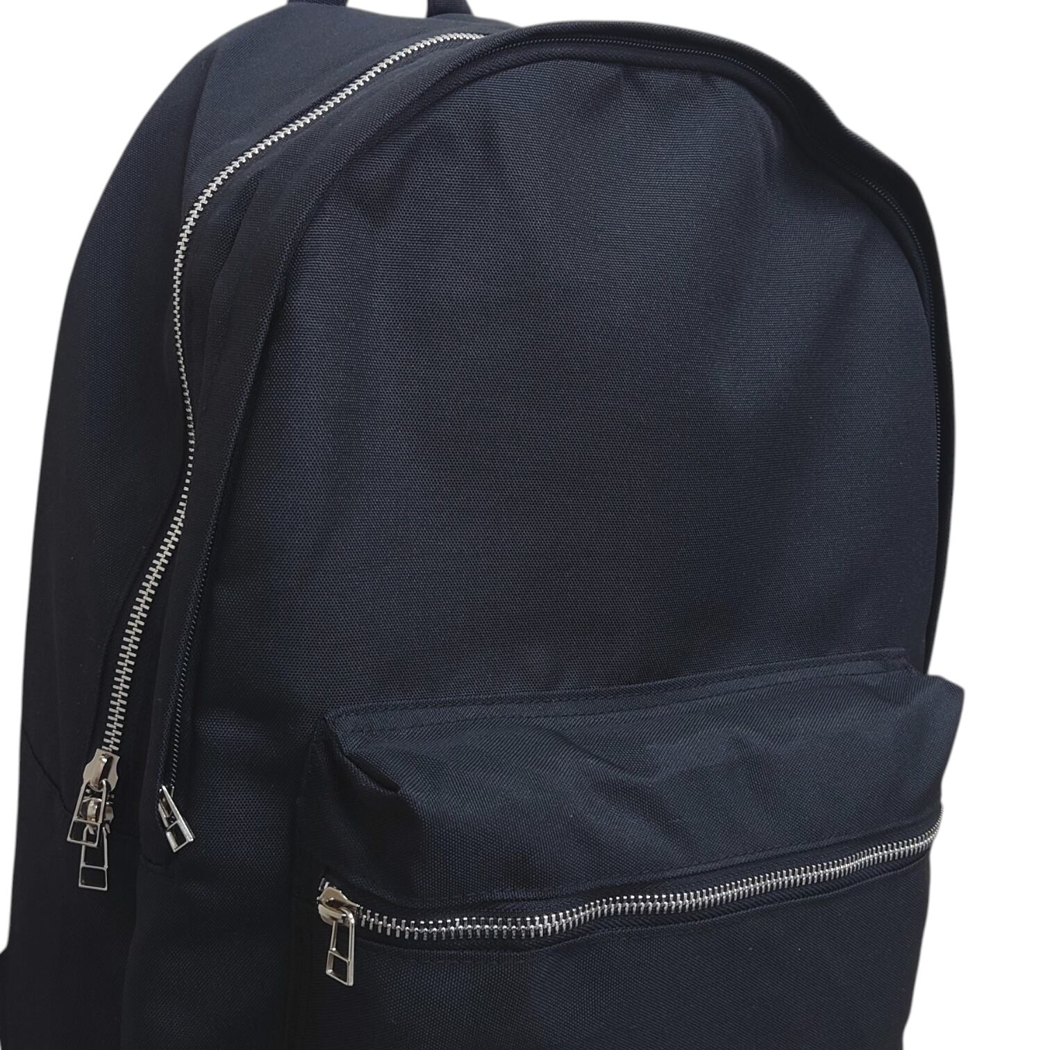 装飾も無い無地のブラックのボディにシルバーファスナーが映える